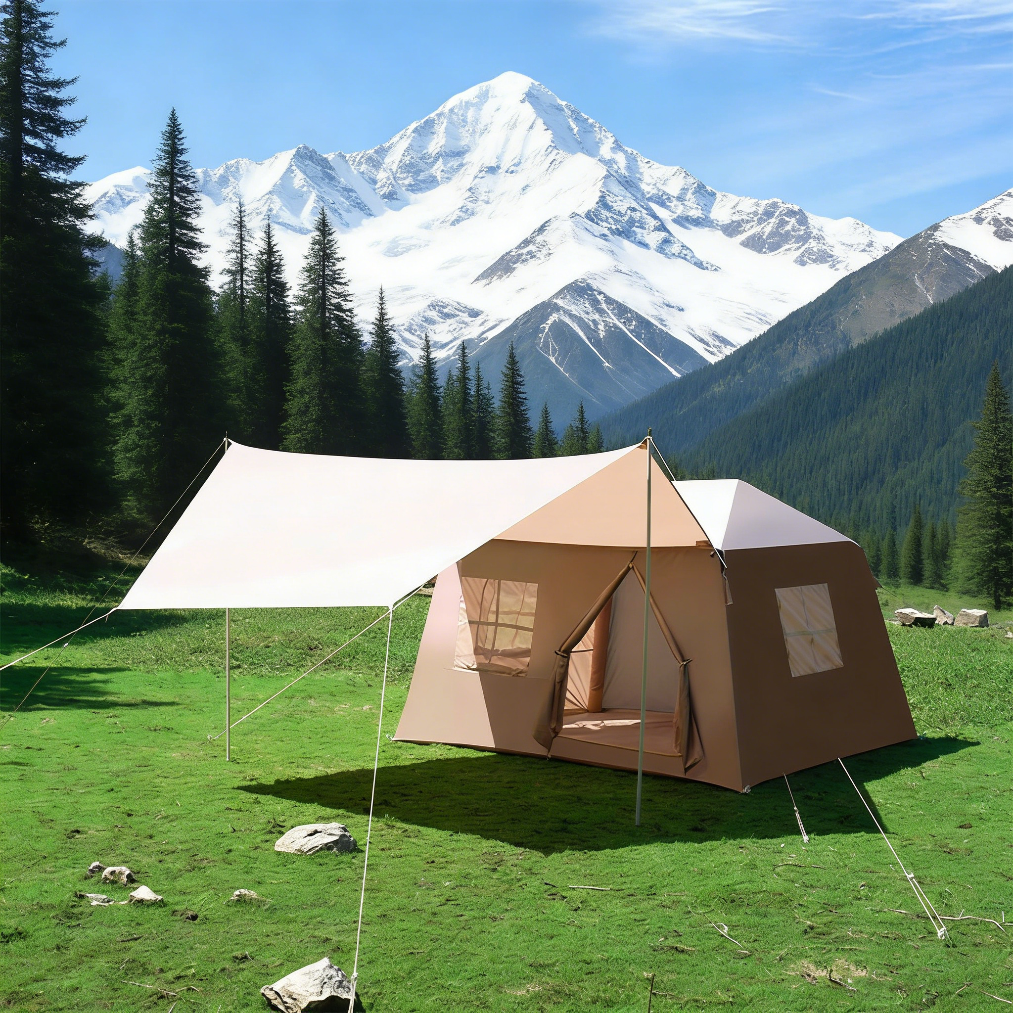 Thoughtful Design Details: Our inflatable cabin tents feature multiple mesh windows and doors for ventilation, keeping the interior fresh and preventing condensation. The removable rainfly provides extra protection in bad weather, while internal storage pockets help organize small items. Some models also come with a built-in awning for extra shade.