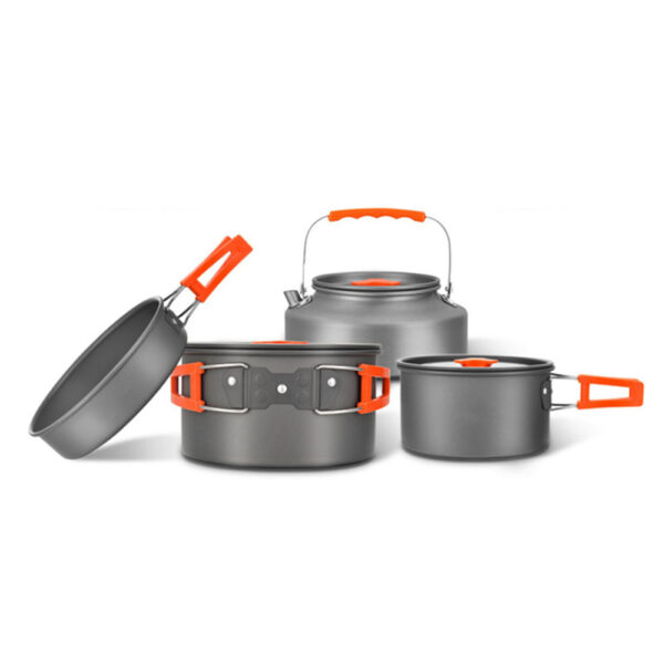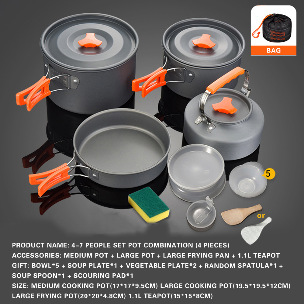 / 3-4 Person Outdoor Camping Cookware Set Kettle Cooking Pot Pan with Bowl and Spoon Aluminum Portable Cutlery Set